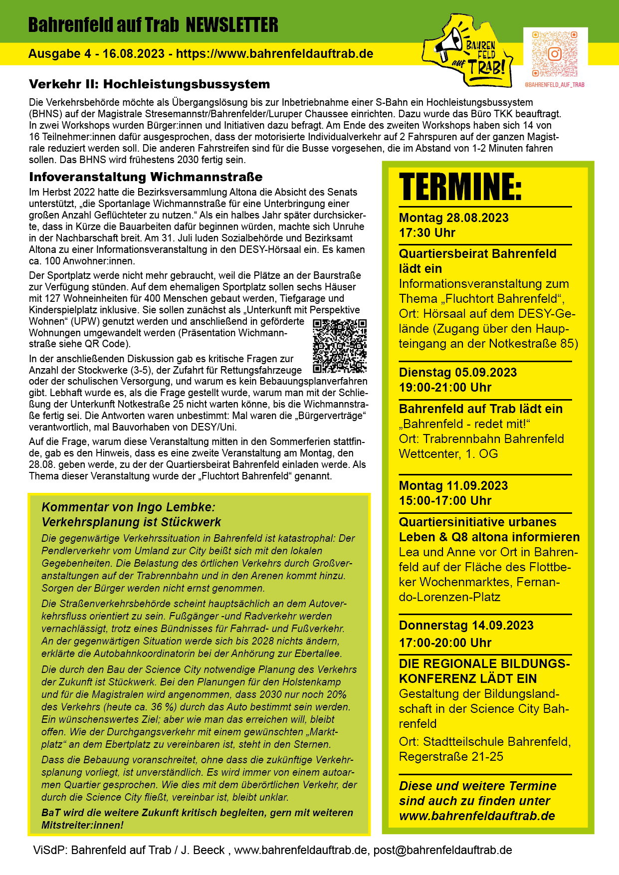 BaT-Newsletter Newsletter Bahrenfeld auf Trab - Ausgabe 4