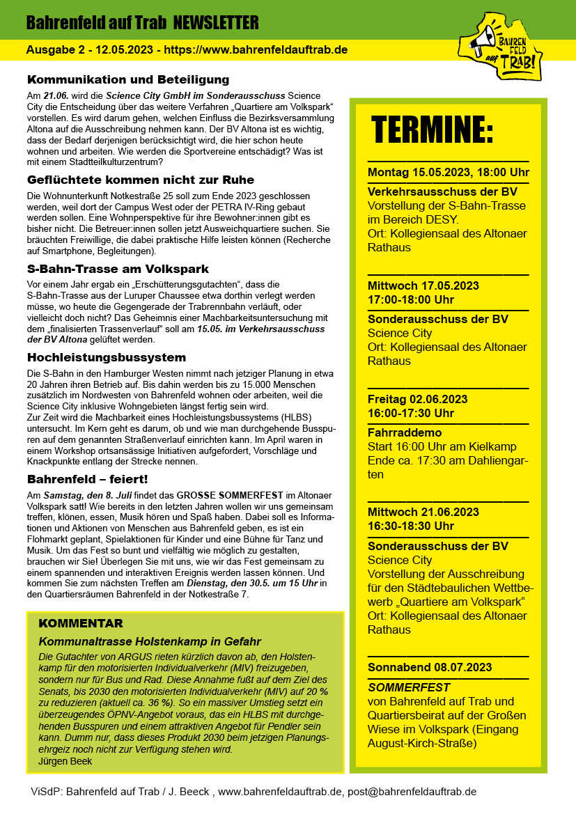 BaT-Newsletter Newsletter Bahrenfeld auf Trab - Ausgabe 2