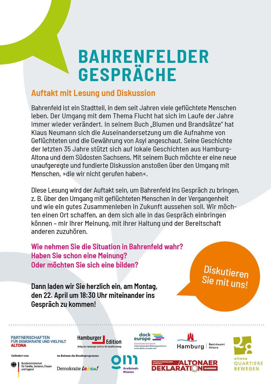 BaT-Newsletter Veranstaltungshinweis: Bahrenfelder Gespräche am 22.4.