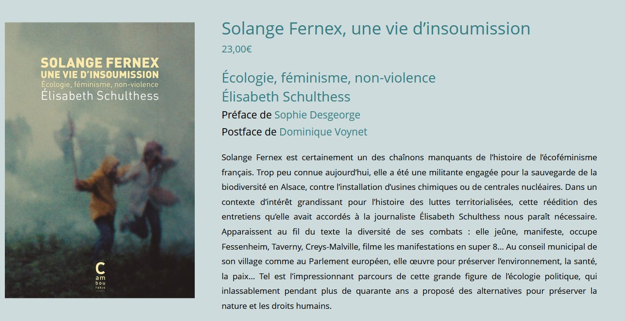 Je présenterai la récente parution de la biographie "Solange Fernex, une