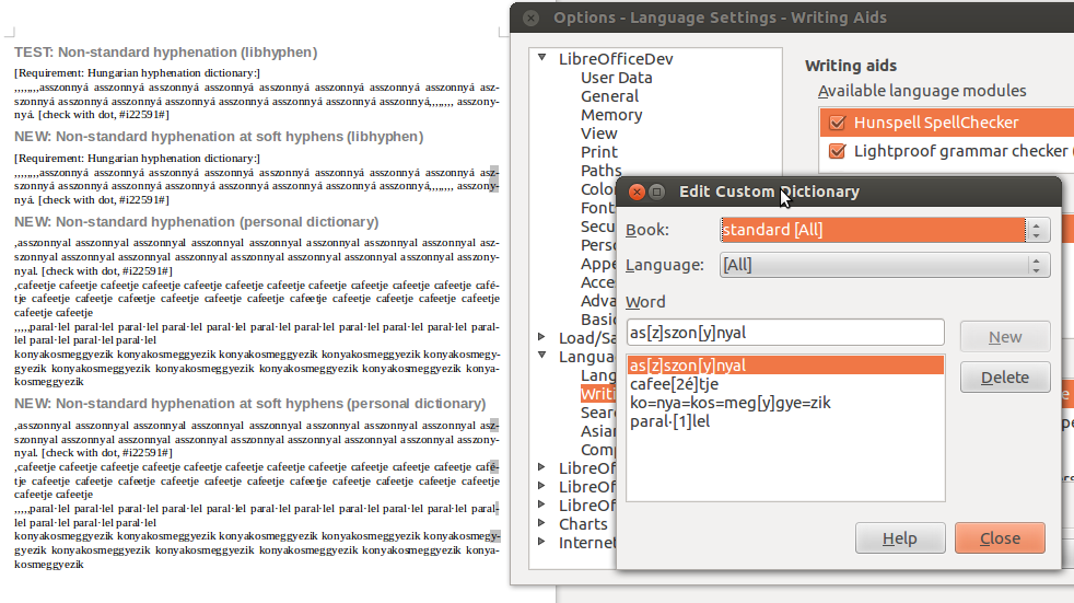 >>> Other comment: a "hyphenation" dictionary has to be support other